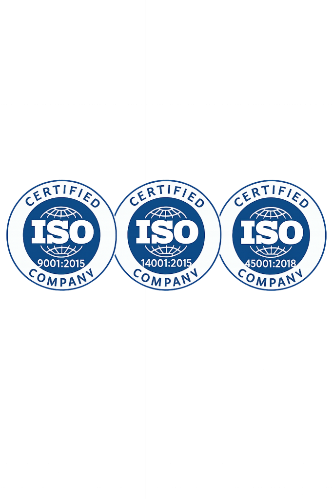 We are proudly certified to ISO 9001:2015 (Quality Management), ISO 14001:2015 (Environmental Management), and ISO 45001:2018 (Occupational Health & Safety Management) — ensuring world-class standards across every aspect of our operations.
